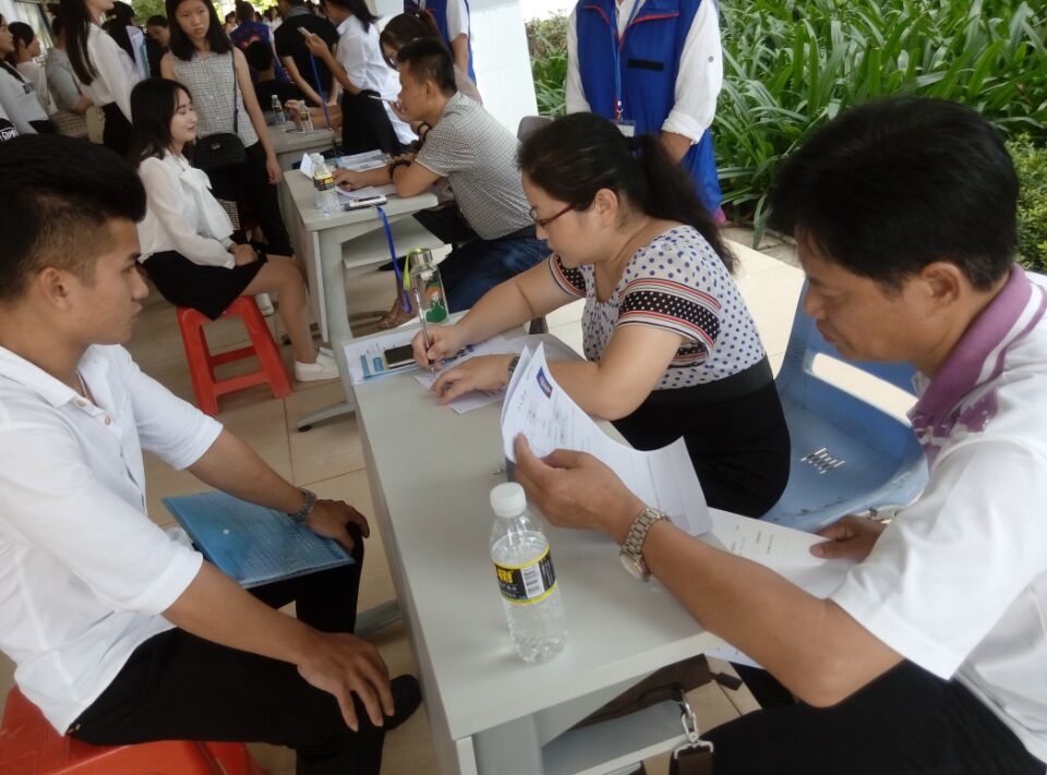 上午9时,2016届海南省毕业生供需洽谈会在主持人的开场白下拉开了帷幕。出席此次洽谈会开幕式的人员主要有学院领导、企业代表、公司大一员工,逐次由徐畅副书记、企业代表、毕业生代表分别上台致辞。开幕式在大家的热烈掌声中闭幕。