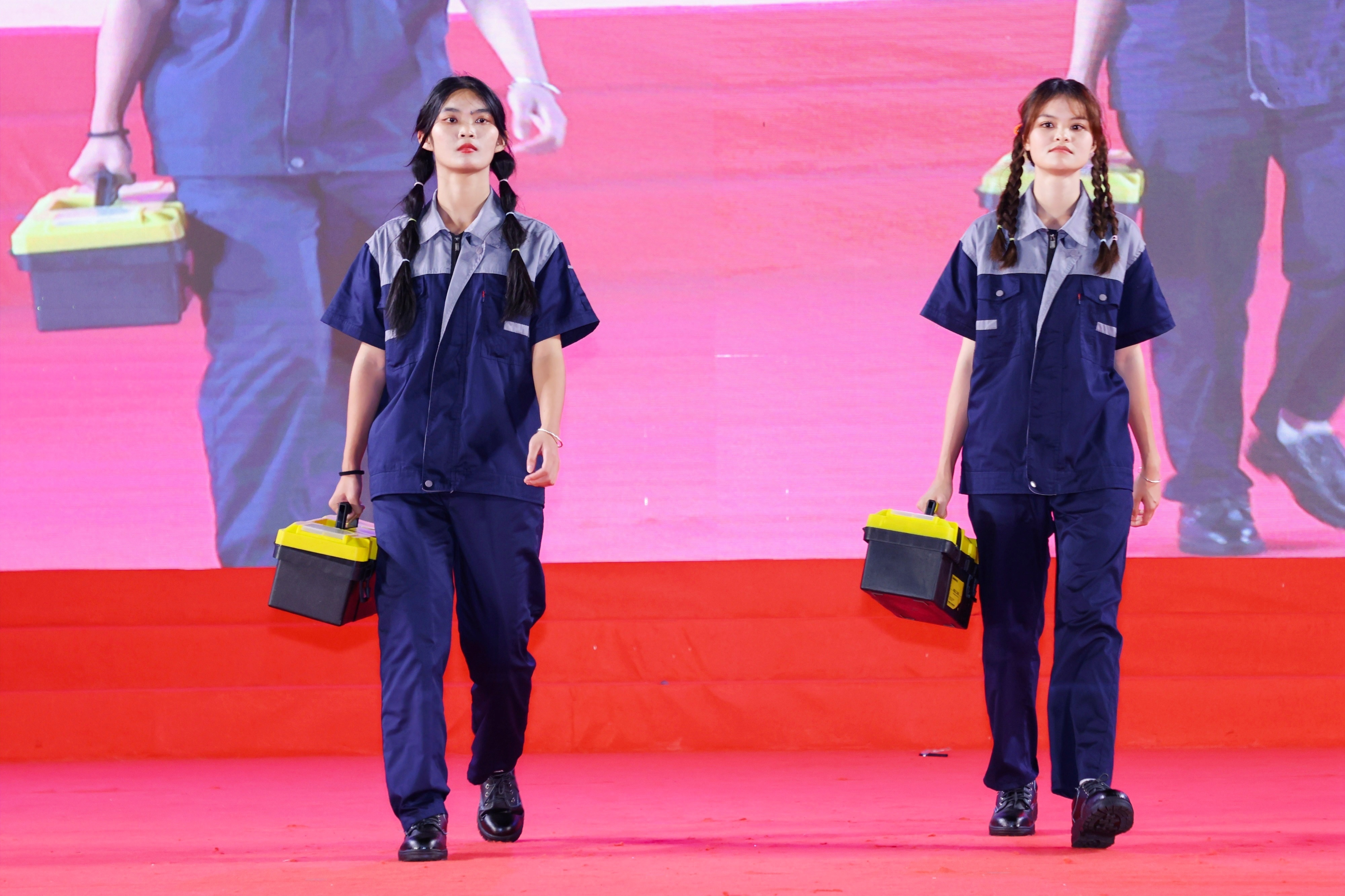 在创新内容展示环节,14人的创意走秀团队伴随着动感的音乐,身着机电行业特色工装工鞋,手持具有代表性的工具、护具,甫一登场便牢牢地抓住了评委及观众的目光,共三轮的展示环节过程中喝彩、欢呼不绝于耳,充分的展示了yl6809永利官网的专业特色。在随后的礼仪操规定动作表演中,公司代表队队列整齐、步伐有力登上舞台,参赛同学们以端庄的仪态,优雅的举止,得体的手势,从整理着装、微笑点头再到引领示意等方面进行了全方位标准化展示,赢得了各评委老师的充分肯定。