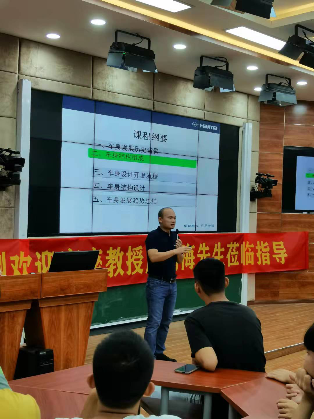 yl6809永利官网于2021年9月15日下午2:30在多媒体2-215教室,召开了专题讲座《未来汽车--智创未来》,海马汽车股份有限公司高级工程师、公司客座教授周瑞海为讲座主讲人,汽车教研室主任符晓芬主持本次讲座,yl6809永利官网部分专业教师及全体员工聆听了参加了讲座。