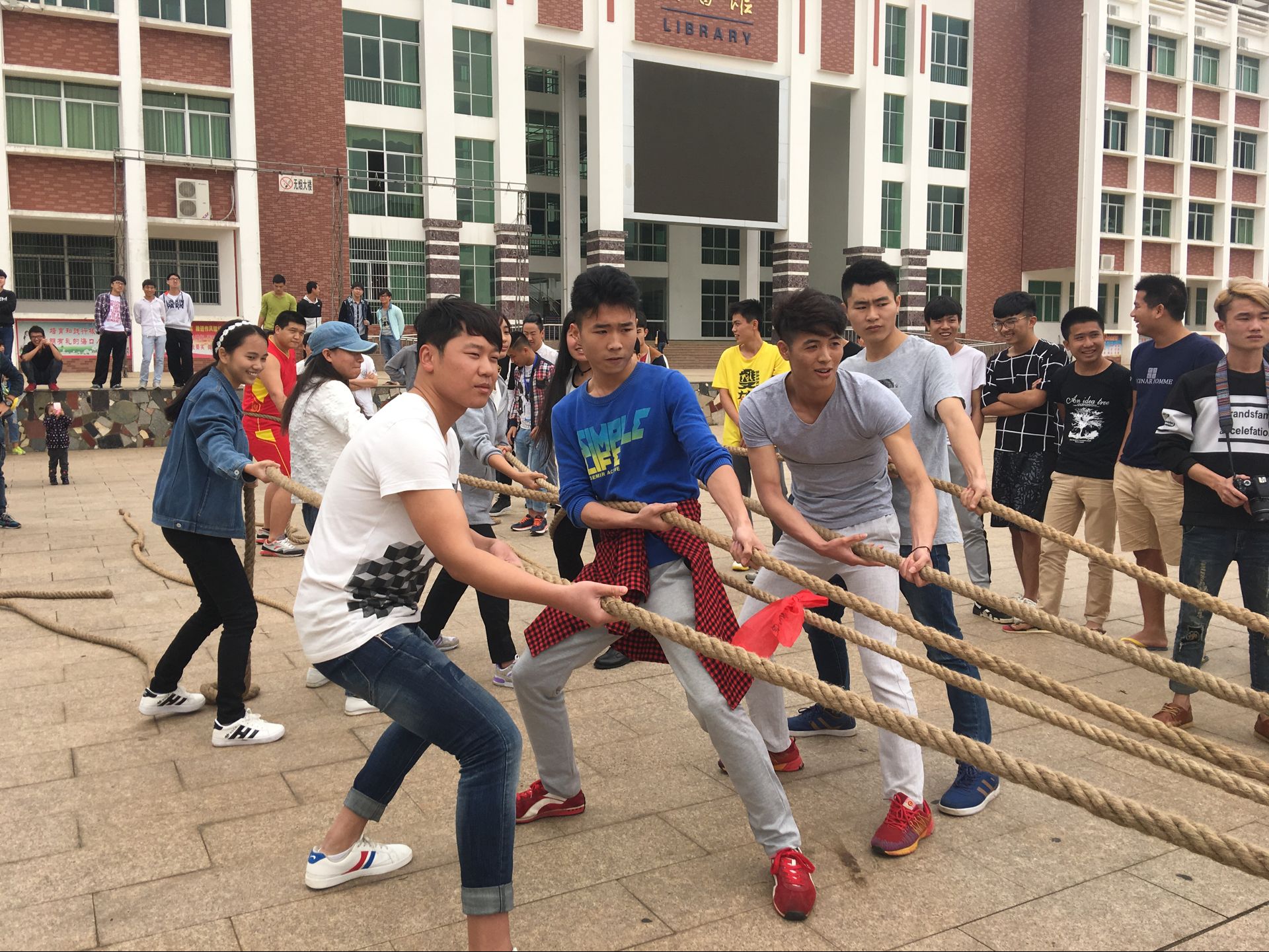 首先由主持人进行运动会开幕式,伴随着学校舞蹈队和财管竹竿舞的落幕,五绳拔河比赛向我们每个学院袭来,我们学院比较幸运,抽签直接进入半决赛,接下来分别和旅馆学院、财管学院开始争夺首冠,在比赛过程中,两边站满了观众,为自己学院的队员们加油打气,最终在公司参赛队员的积极默契配合下,取得了五绳拔河比赛的冠军。