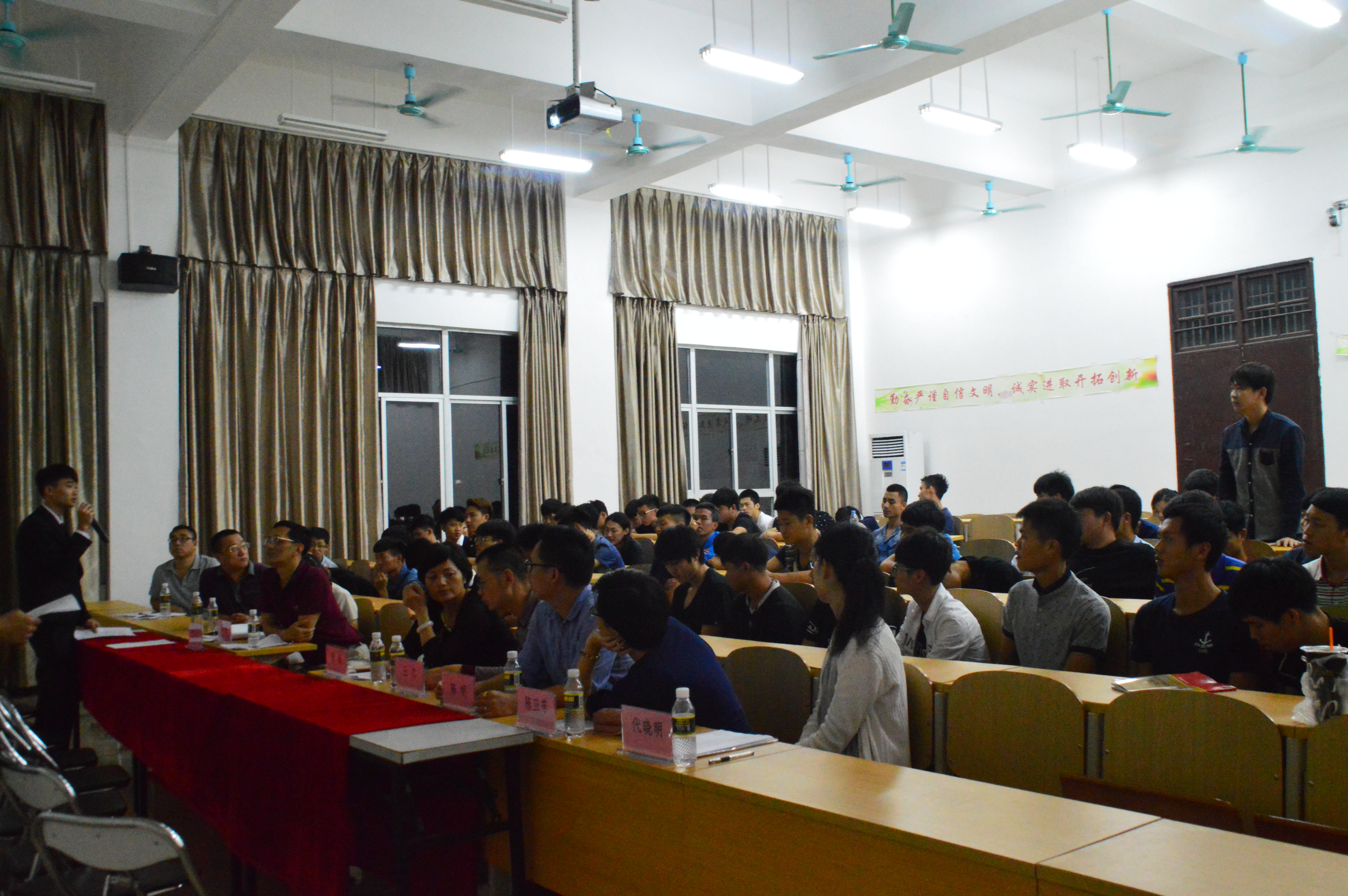之后进入了现场自由提问环节,在座的大一大二同学都都纷纷踊跃提问,现场气氛顿时活跃起来。,岗位选择,具体岗位操作,以及特殊情况的处理等方面。面对同学们众多而又复杂的问题,黎传杨同学都细心地一一解答,解答了同学们的困惑,黎传杨也收到了大二兄弟们的美好祝愿。