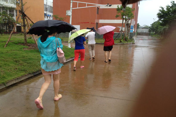 10月5日讯(工程技术学院 李京京报道)今年第22号台风“彩虹”海南东部沿海地区登陆,最大风力达到了12-14级,由于第22号强台风“彩虹”的影响,海口出现大风暴雨天气,给广大师生生活带来了较大影响。公司领导心系大家安全,于是由陈继敏书记带队,在14级辅导员陈亚芳老师、代晓明老师,15级辅导员肖洁老师及员工会干部的陪同下,对公司全体员工宿舍进行了宿舍走访慰问,关心同学们的状况,给同学们送去了温暖。